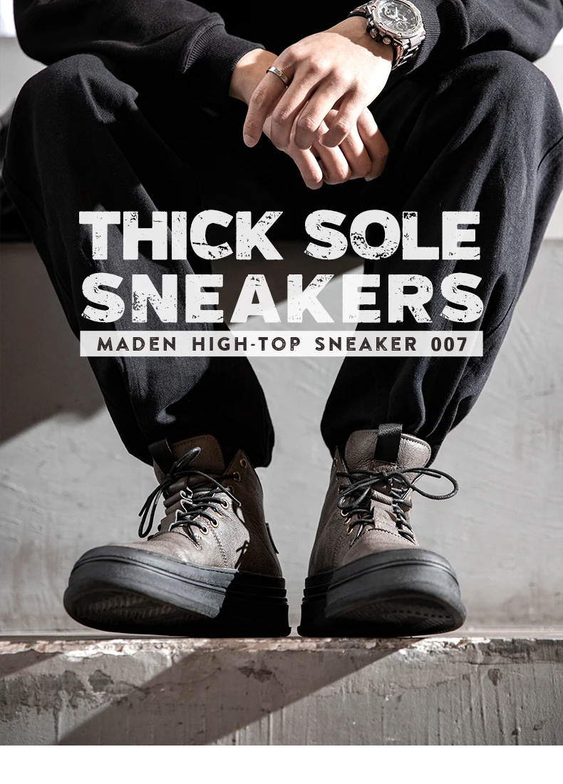 Gray Thick Soles Retro High-Top Shoes